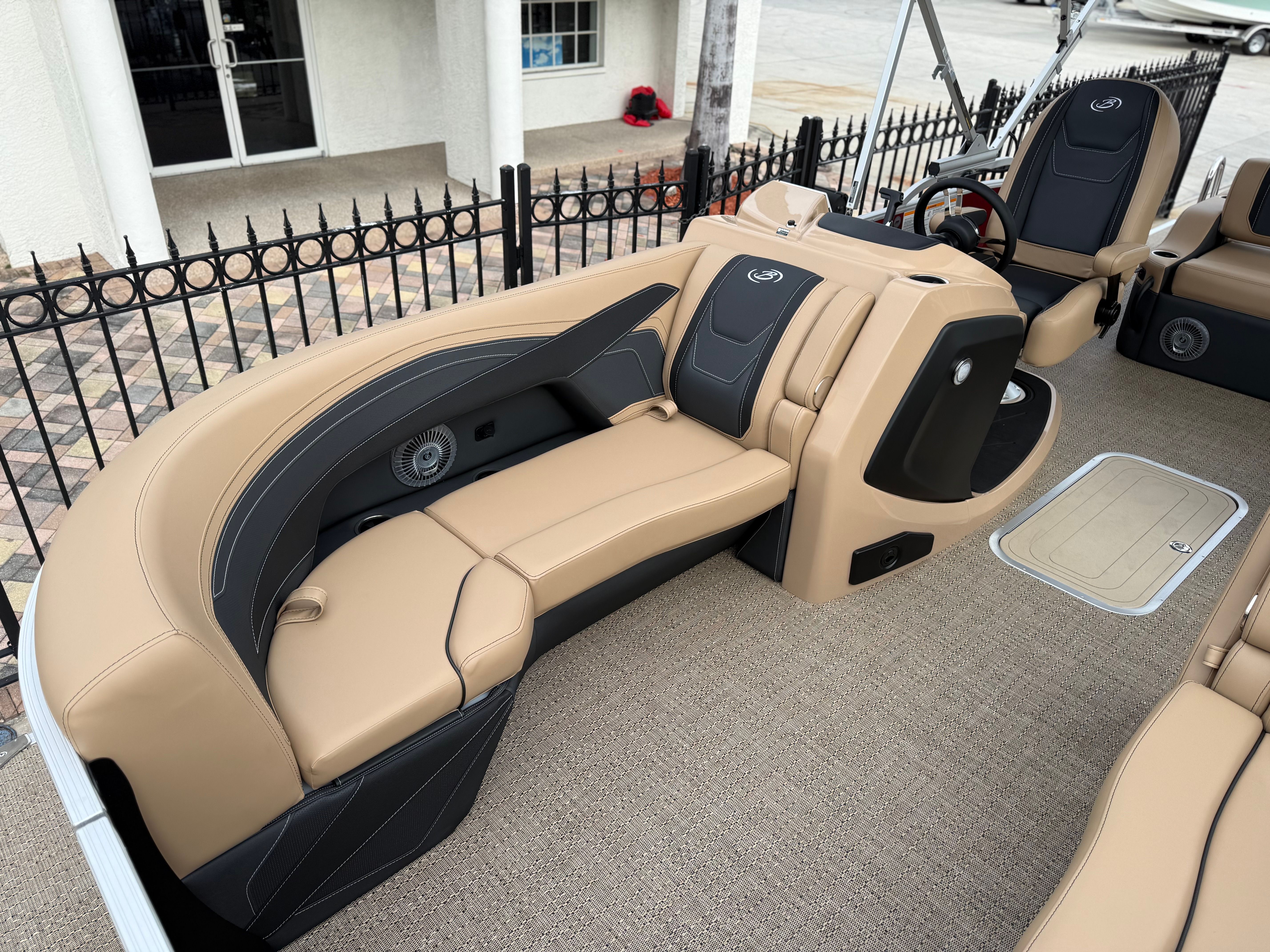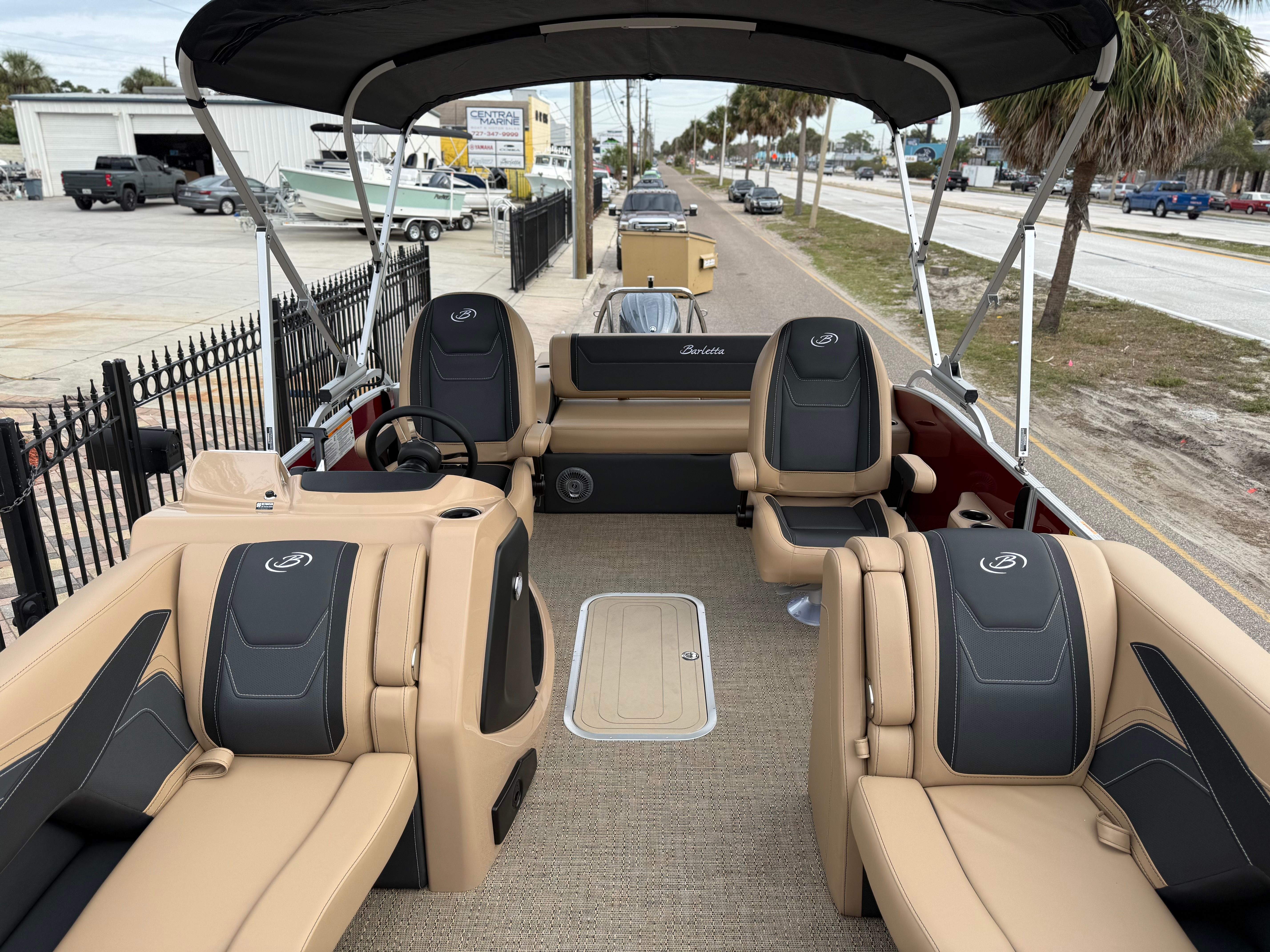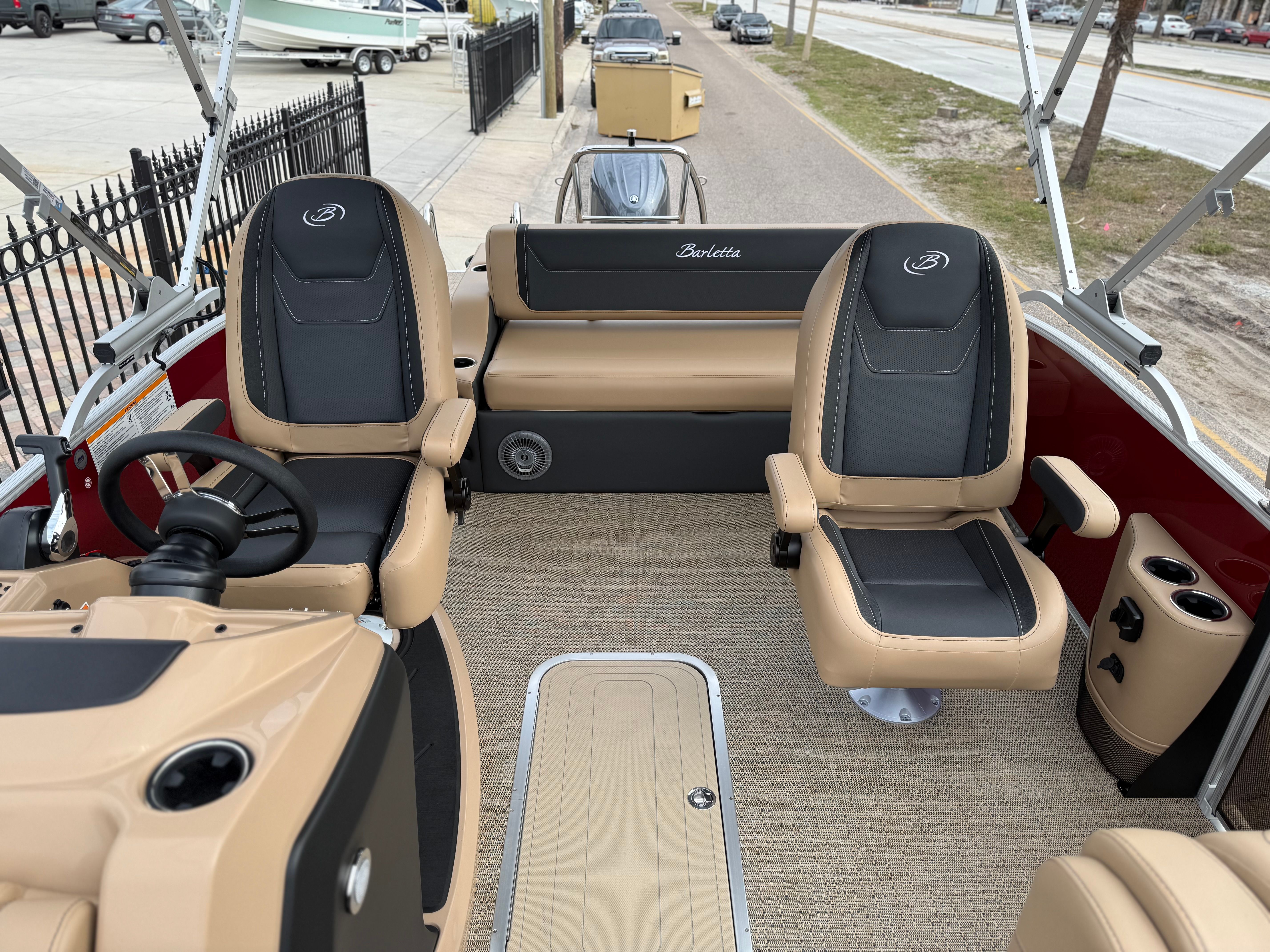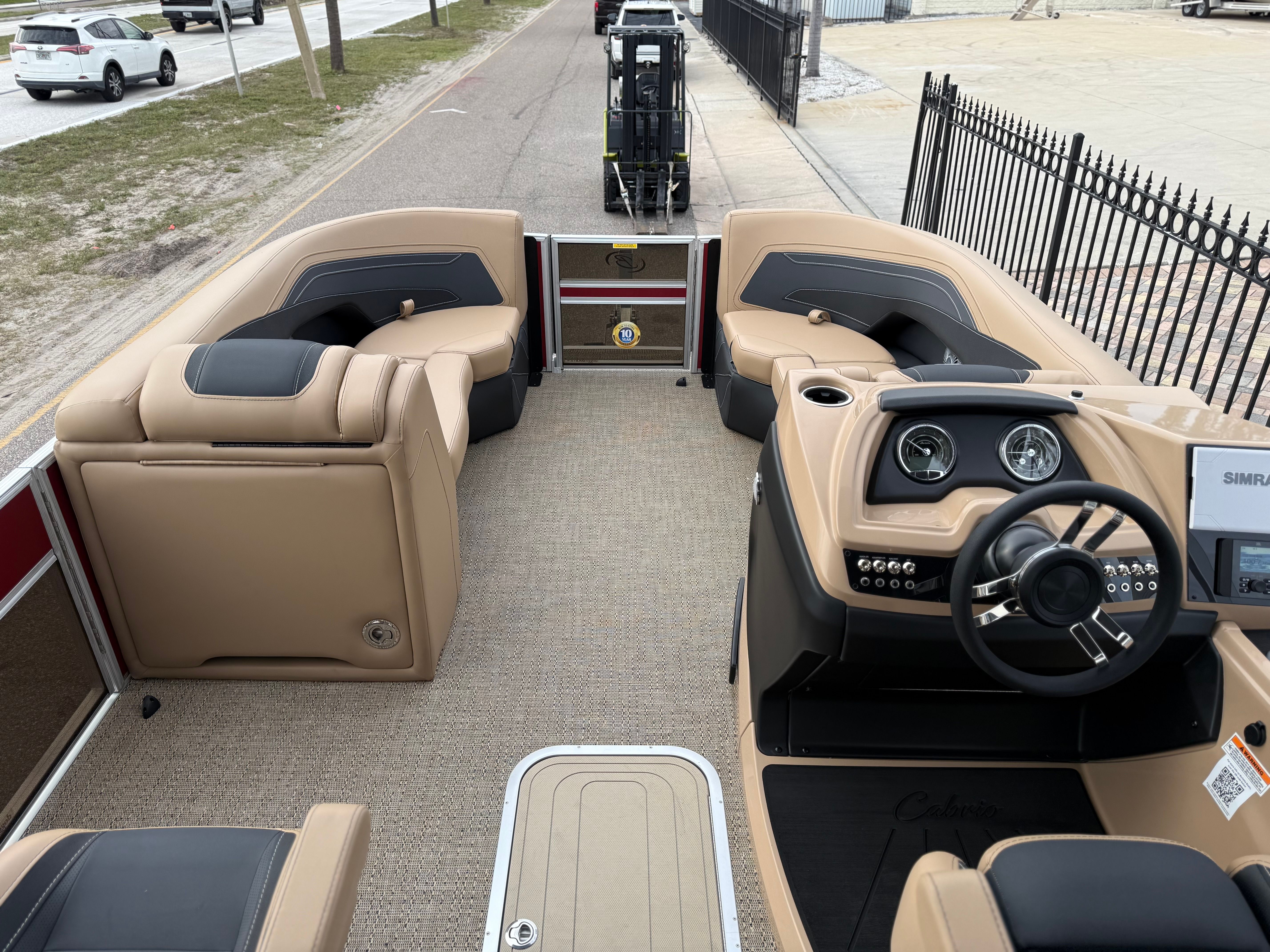 The 2026 Barletta Cabrio C22UC comes loaded with features designed to maximize comfort, convenience, and fun. The Champagne Railskin color with Red Garnet accent creates a sophisticated and sporty look, while the Carmella Tan with Onyx furniture offers plush seating for all your guests. The Amore Tan flooring is both stylish and practical, providing a comfortable surface that is easy to clean and maintain. The Coastal Edition Cabrio package adds versatility for a range of water environments, and the Triple Toon Package with Midship Storage increases stability and storage capacity, making it easy to bring along all your essentials for a day on the water.For navigation and entertainment, the Simrad 7" G07 XSR Chartplotter/Multifunction Display is ready to guide your adventures, offering advanced charting and multifunction capabilities. Please note, engine communication is not included and may require dealer installation if desired. The Yamaha mechanical pre-rig and stainless steel prop ensure that your engine setup is both efficient and reliable, giving you peace of mind as you cruise.