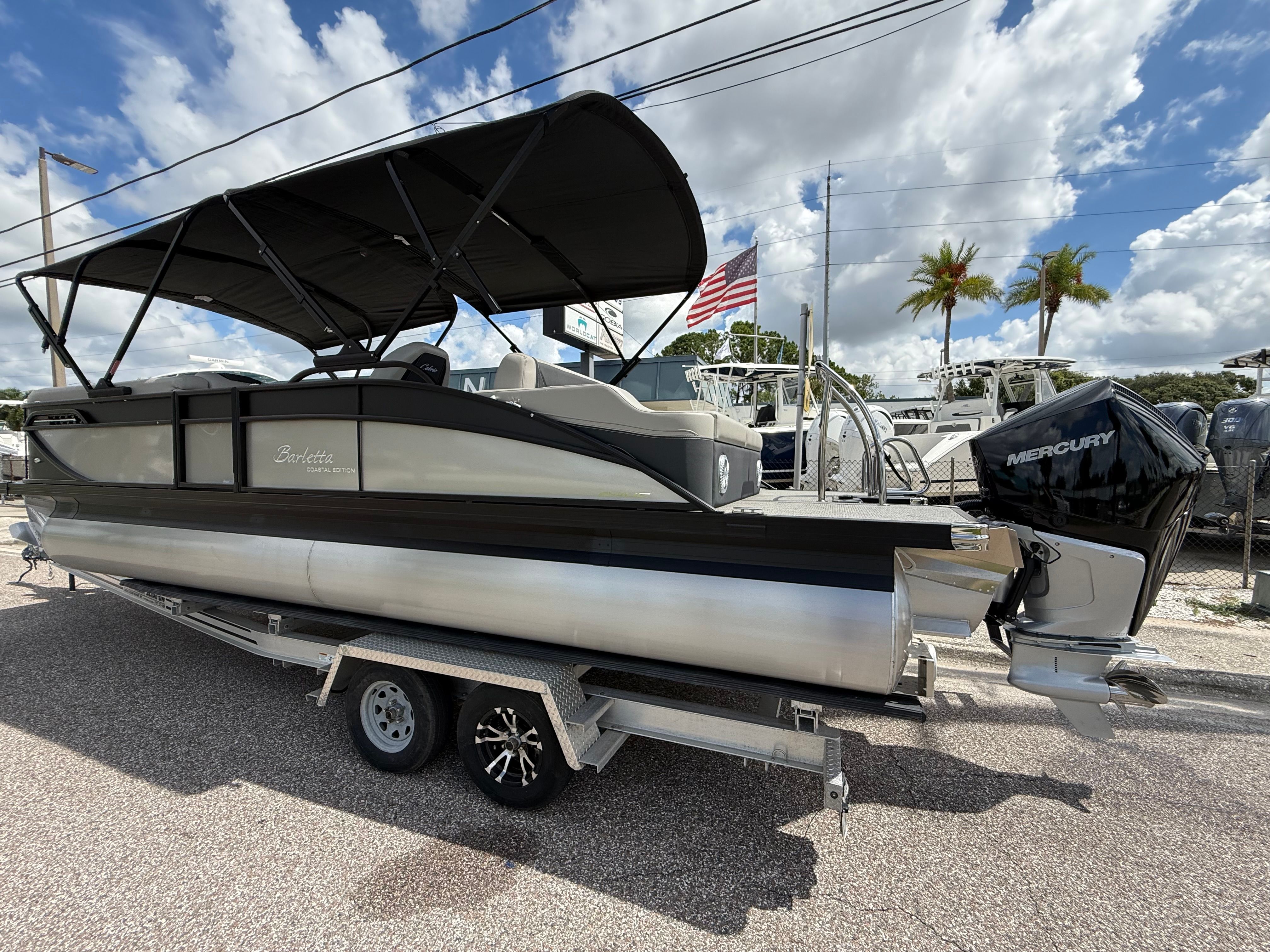 In summary, the 2026 Barletta Cabrio C24UC is a standout pontoon boat for sale that combines cutting-edge performance, luxurious comfort, and practical features in one stunning package. With its powerful Mercury Verado V8 engine, advanced steering and control systems, and a host of premium features—including the Matte Black railskin, Champagne accent, Blackout Package Cabrio, Marquesan Gray/Onyx furniture, Amore Gray flooring, Coastal Edition Cabrio, Triple Toon Package with midship storage, and digital gauges—this Barletta boat for sale is ready to deliver unforgettable moments on the water. Whether you are seeking adventure, relaxation, or a bit of both, the Cabrio C24UC is designed to make every outing exceptional. Don’t miss your chance to own this remarkable pontoon—contact your dealer today to learn more and start your next adventure!
