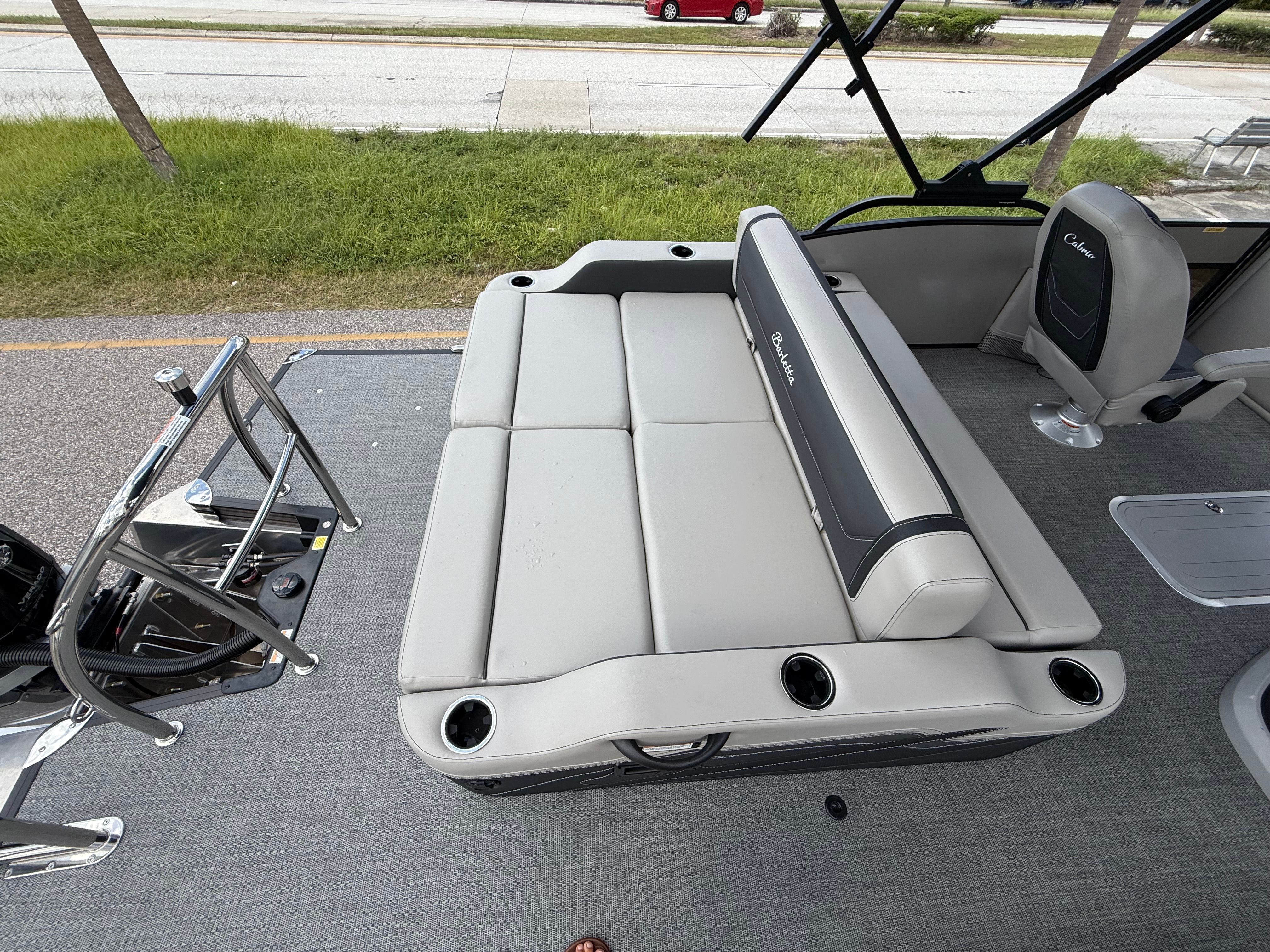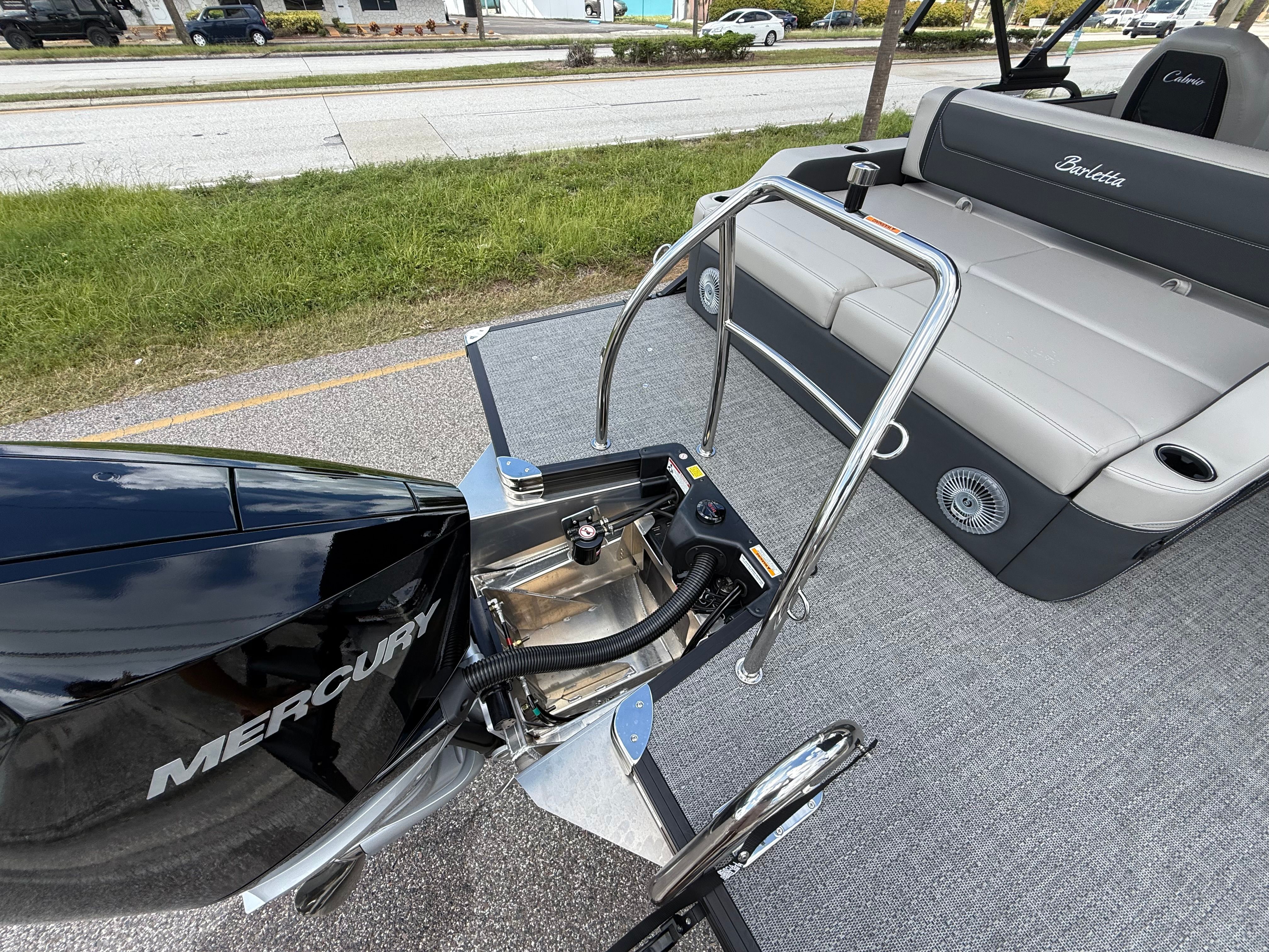 The Barletta Cabrio C24UC is as practical as it is luxurious. The midship storage provided by the Triple Toon Package makes it easy to stow water toys, fishing gear, or picnic supplies, keeping the deck clutter-free and organized. The boat’s length and design make docking straightforward, while the hydraulic and power assist steering allow for precise movements in tight spaces. Fuel efficiency is enhanced by the advanced Mercury Verado V8 engine, helping you make the most of every outing without frequent stops at the pump. The durable construction and high-quality materials ensure that your investment will stand the test of time, providing years of enjoyment and minimal maintenance.