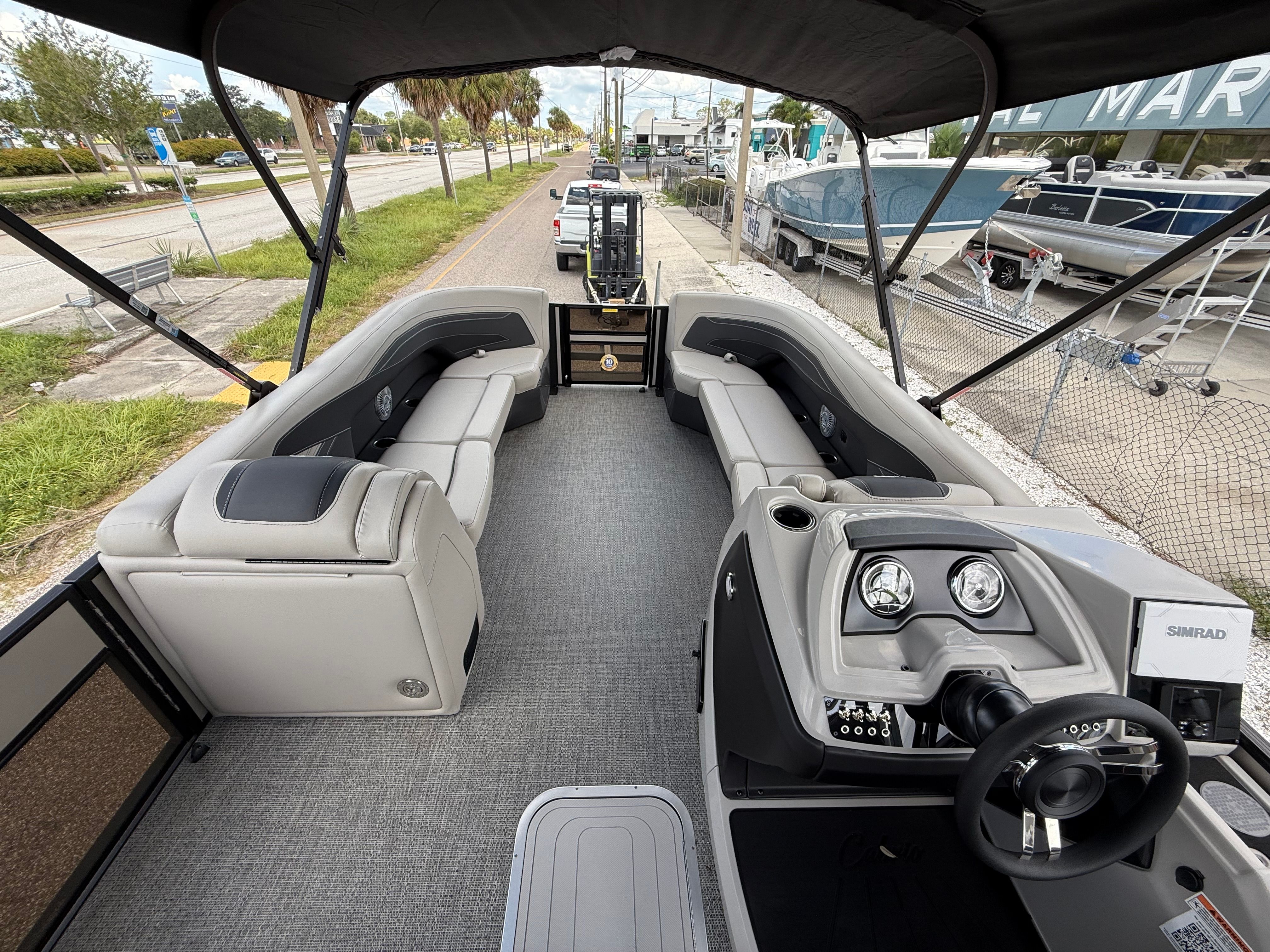 The 2026 Barletta Cabrio C24UC is packed with features designed to maximize comfort, convenience, and enjoyment. The Blackout Package Cabrio adds a bold, contemporary touch to the exterior, while the Coastal Edition Cabrio ensures durability and style in a variety of environments. The Triple Toon Package with midship storage provides enhanced stability and additional space for gear, making it easy to bring along everything you need for a day on the water. The combination of Marquesan Gray/Onyx furniture and Amore Gray flooring not only looks stunning but also offers a plush, comfortable setting for relaxing or entertaining. Digital gauges keep you informed at a glance, while the rigged engine with a stainless steel prop ensures optimal performance and longevity.