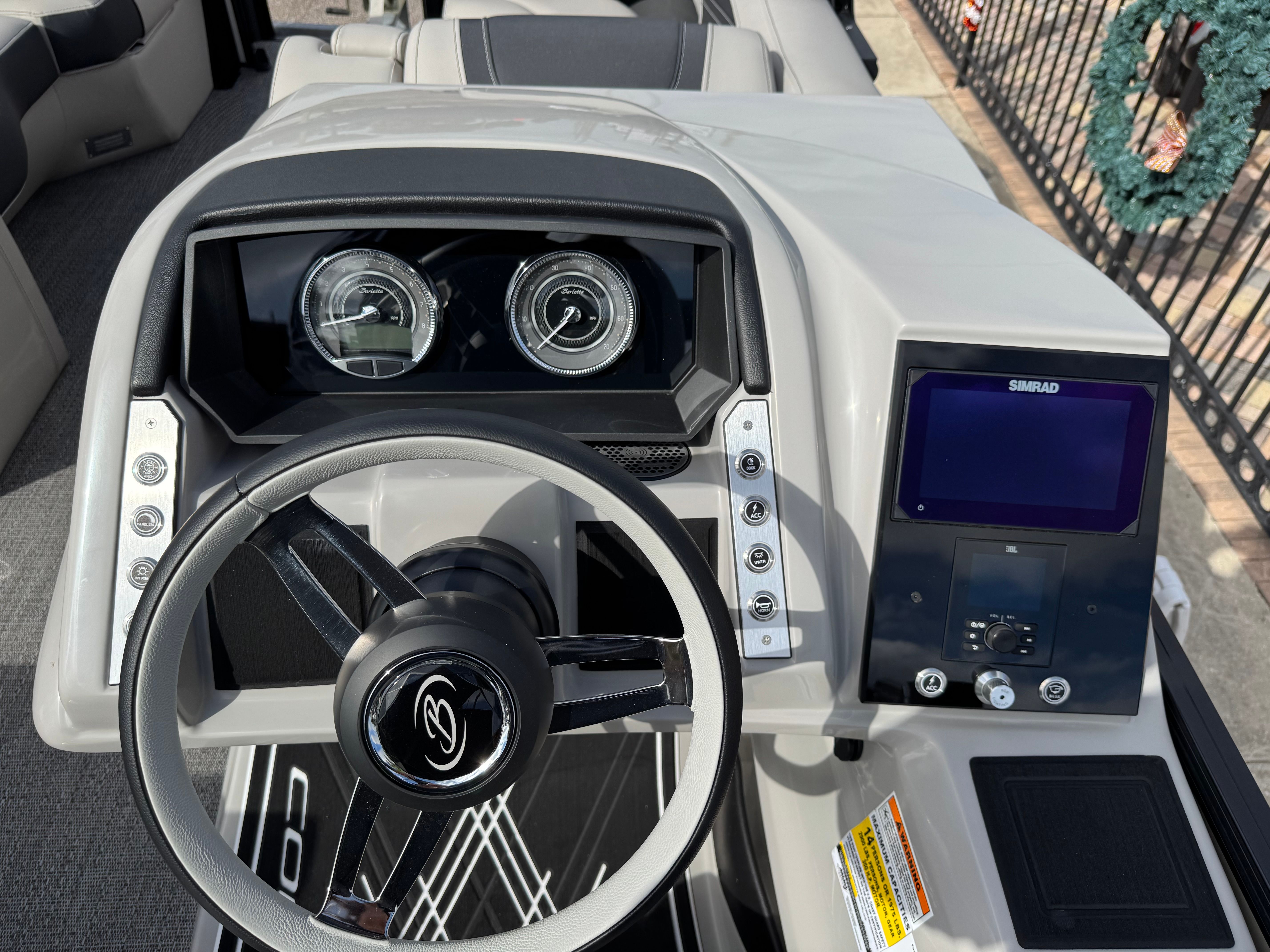At the heart of the Barletta Corsa 25UE is a powerful Mercury (D) 300L Verado V8 engine, delivering an impressive 300 horsepower. This single-engine setup ensures smooth acceleration, responsive handling, and plenty of power for towing water toys or reaching your favorite destinations quickly. The Mercury Digital DTS Pre-Rig for VERADO engines with Vessel Link provides seamless digital throttle and shift control, enhancing the overall driving experience. Hydraulic and power assist steering make maneuvering effortless, while digital gauges keep you informed of all critical engine metrics. The stainless steel prop ensures durability and optimal performance, making every outing on the water a thrill.