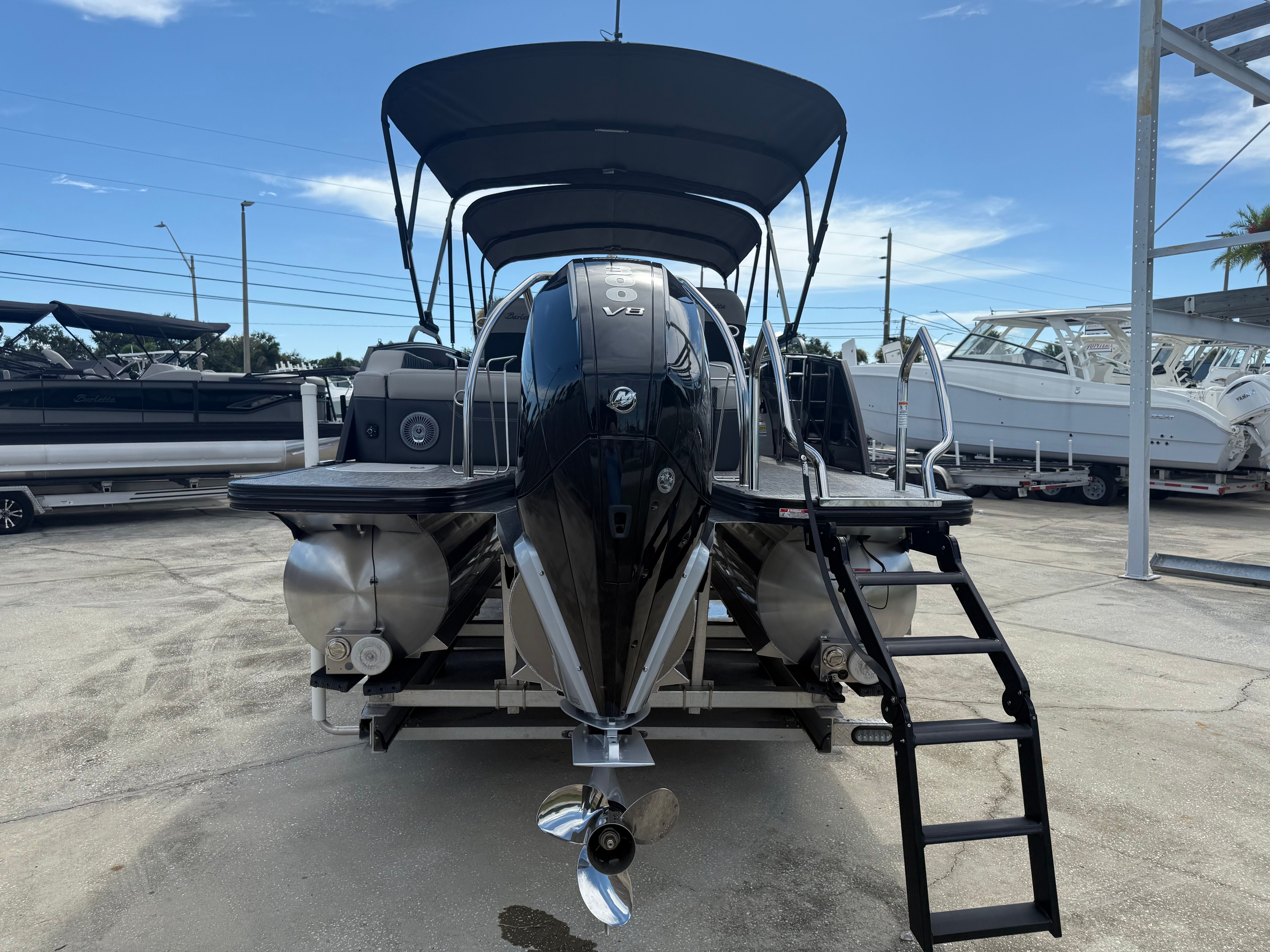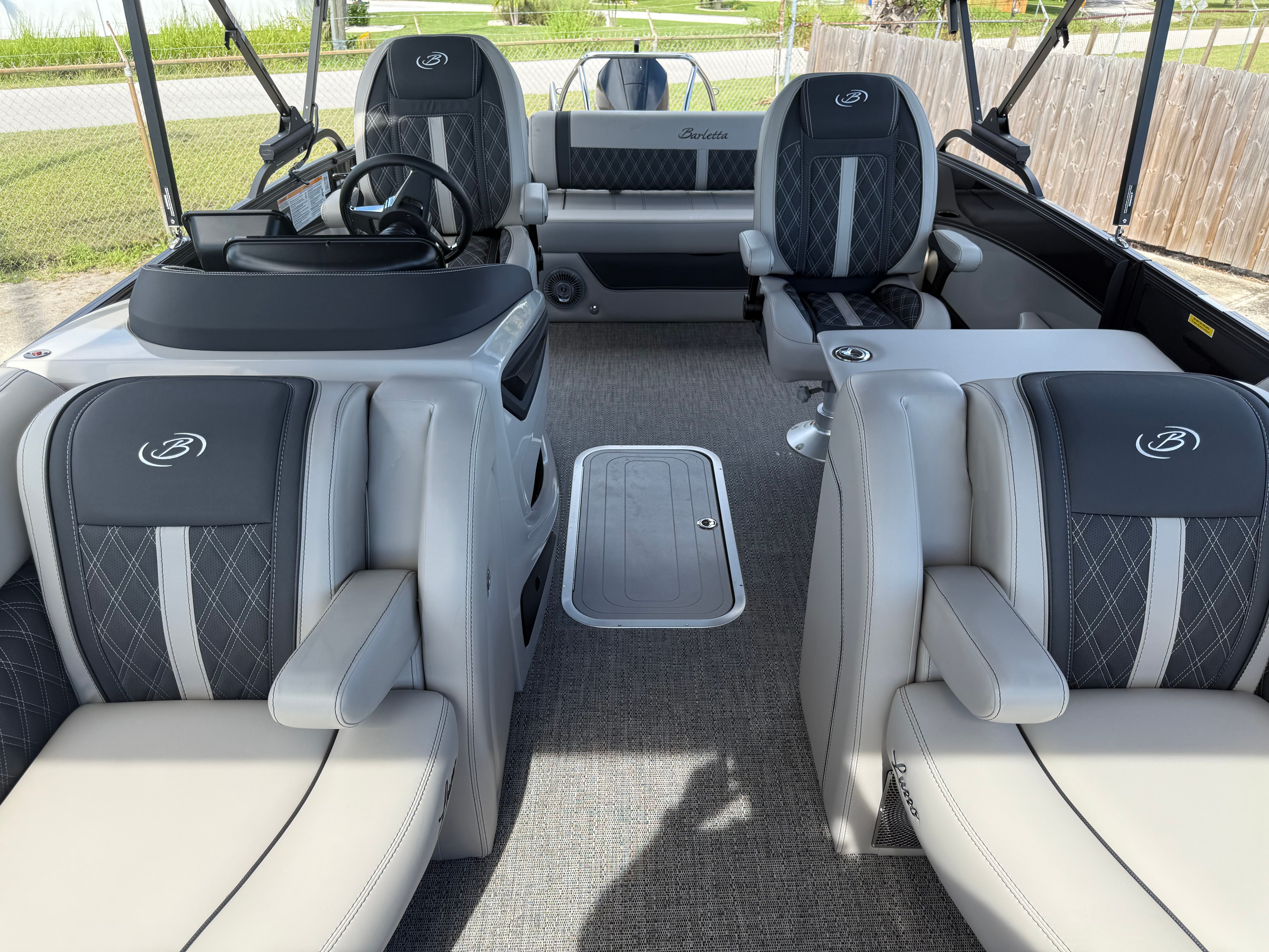 In summary, the 2026 Barletta Lusso L23UC Pontoon is a standout option for anyone seeking a pontoon boat for sale that delivers on every front. With its powerful Mercury Verado V8 engine, advanced steering and digital systems, luxurious Marquesan Gray/Onyx furniture, Amore Gray flooring, and exclusive Coastal Edition Lusso features, this Barletta boat for sale offers an unparalleled boating experience. The striking Black Diamond and Champagne color scheme, Blackout Package Lusso, and double bimini setup further enhance its appeal, making it a true masterpiece on the water.Don’t miss your chance to own this exceptional pontoon boat. Experience the perfect blend of luxury, performance, and versatility with the Barletta Lusso L23UC. Contact your local dealer today to learn more and take the first step toward unforgettable adventures on the water.