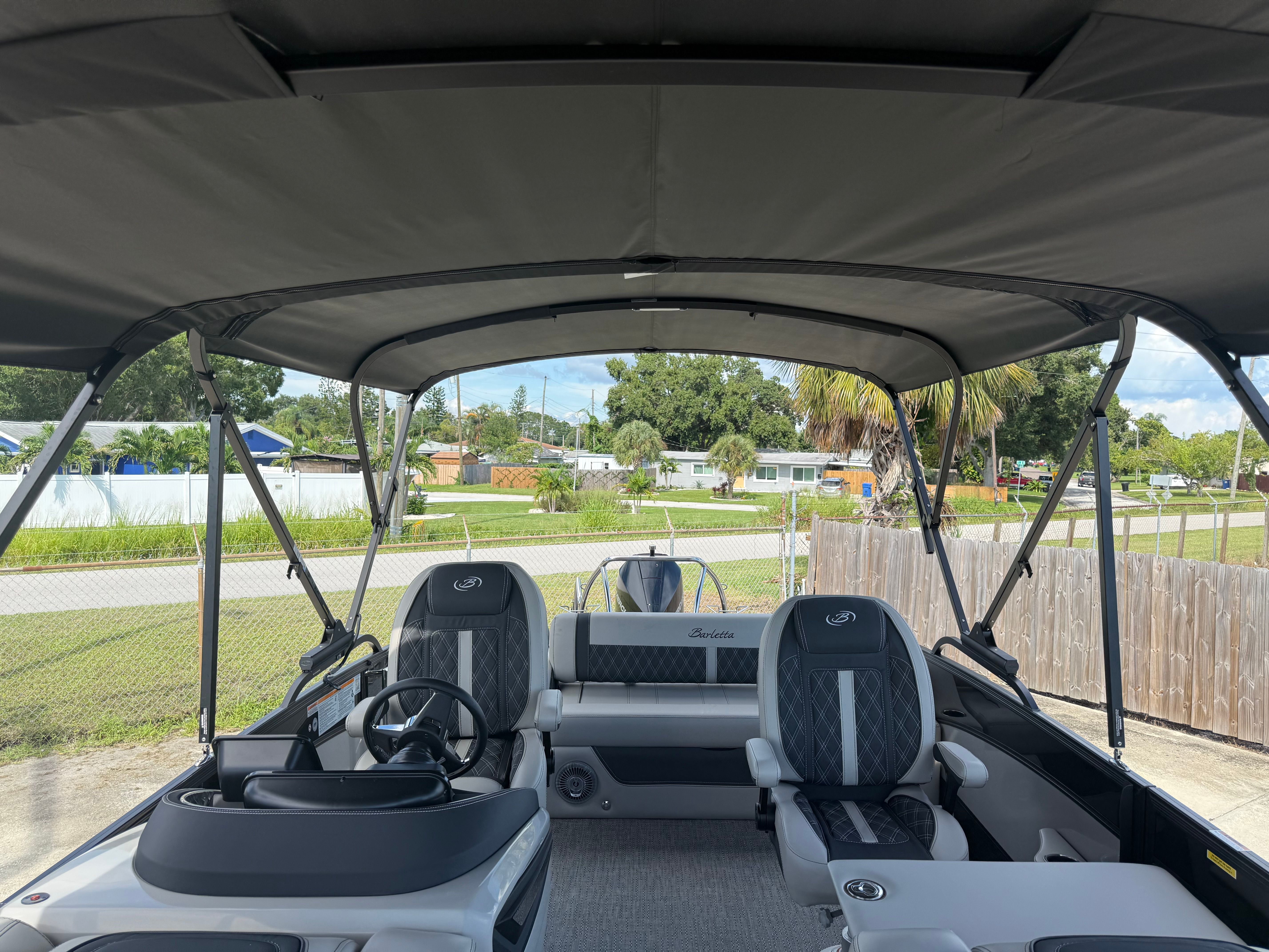 Owning the Barletta Lusso L23UC Pontoon means embracing a lifestyle of fun, relaxation, and social connection. The spacious deck layout is perfect for hosting family gatherings, lively parties, or intimate sunset cruises. The luxurious seating and ample room encourage guests to unwind and enjoy the journey, while the advanced steering and engine systems ensure a smooth, quiet ride every time.The double bimini setup offers flexible protection from the sun, making it easy to create the ideal atmosphere for any occasion. Whether you’re lounging with friends, enjoying a meal, or simply soaking in the scenery, the Lusso L23UC provides the perfect backdrop for unforgettable moments. The stylish Black Diamond and Champagne color scheme, paired with the Blackout Package, ensures you’ll arrive in style wherever your adventures take you.