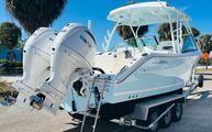 BenefitsOwning the Cobia 280 DC means embracing a lifestyle of fun, relaxation, and adventure. The spacious dual console layout provides plenty of room for family and friends, making it ideal for social gatherings, sunbathing, or enjoying a meal on the water. The ergonomic helm and plush seating guarantee comfort during long cruises, while the advanced steering and control systems make operation effortless for both seasoned captains and newcomers. The premium audio system sets the stage for unforgettable parties, while the elegant faux teak decking and modern color scheme create an inviting atmosphere that is sure to impress.
